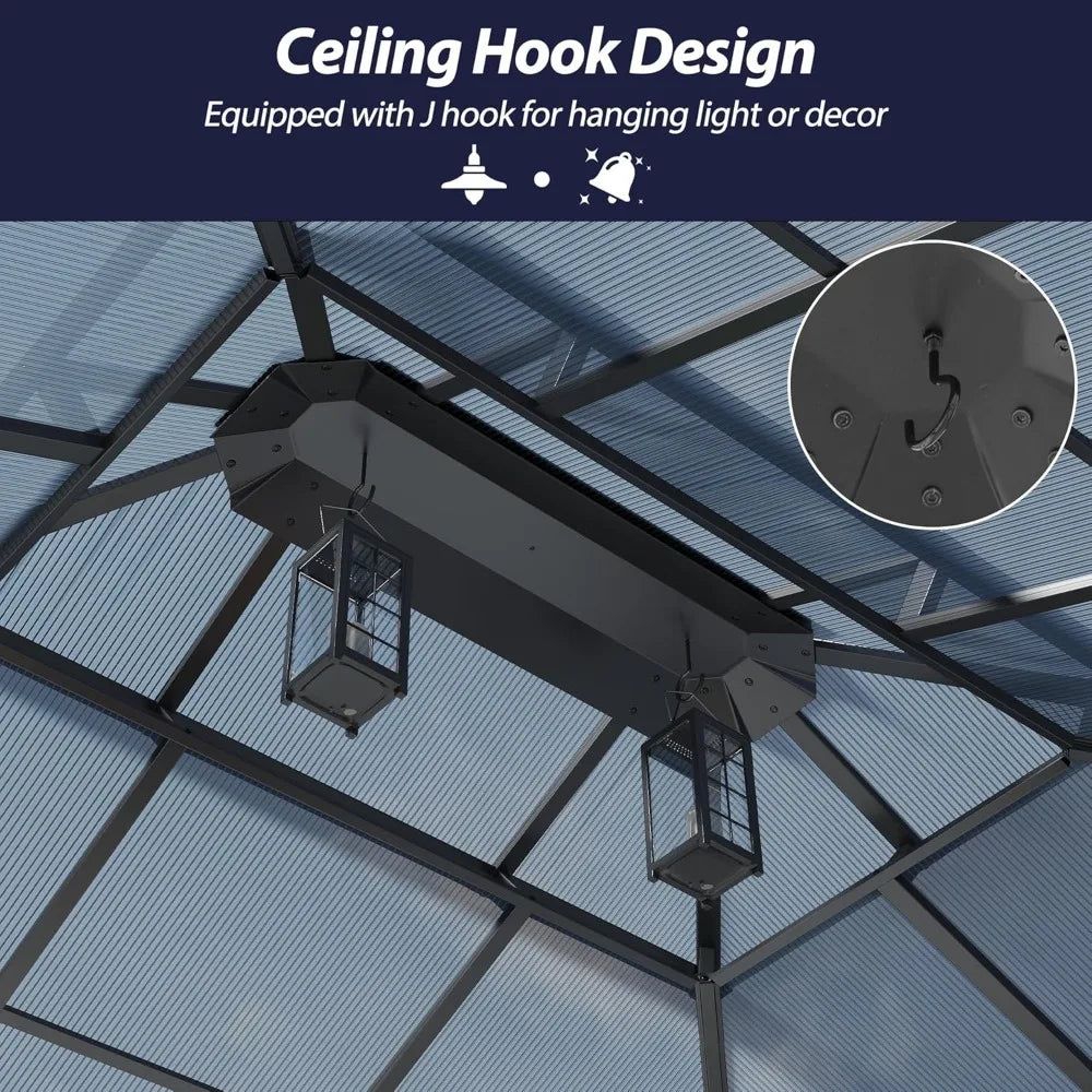 12' x 14' Hardtop Gazebo with Double Polycarbonate Roof, Metal Frame, Netting & Curtains for Outdoor Garden Patio