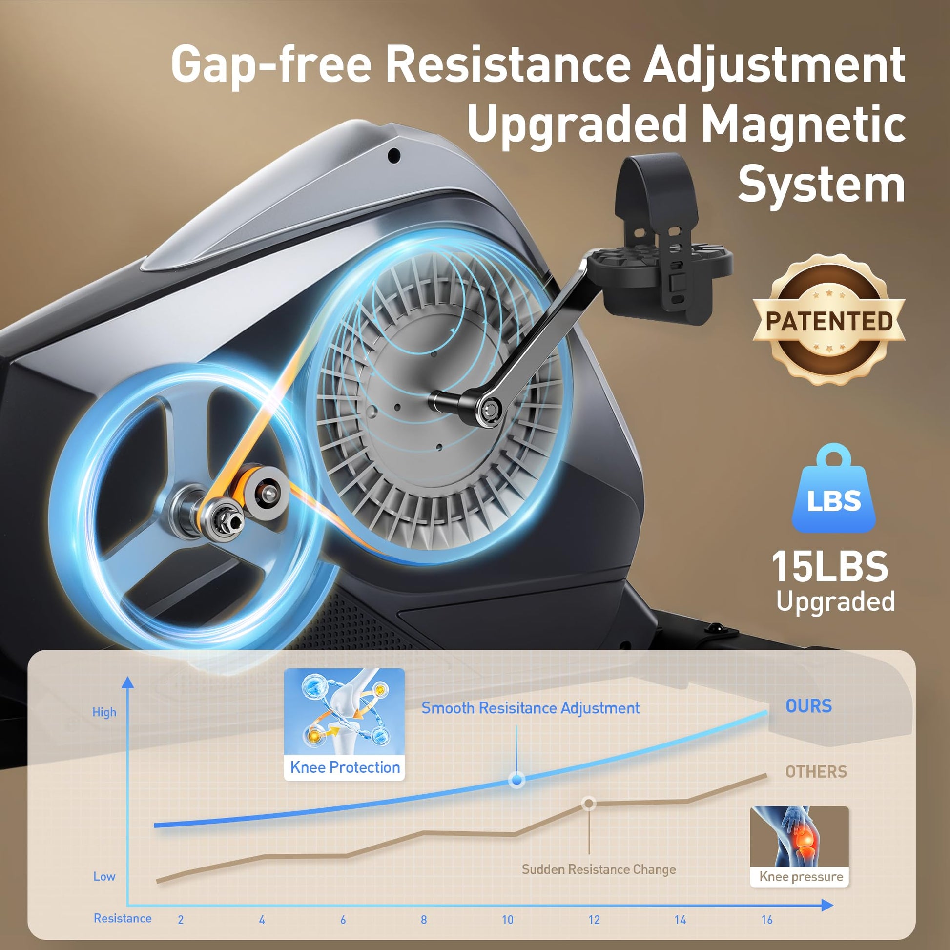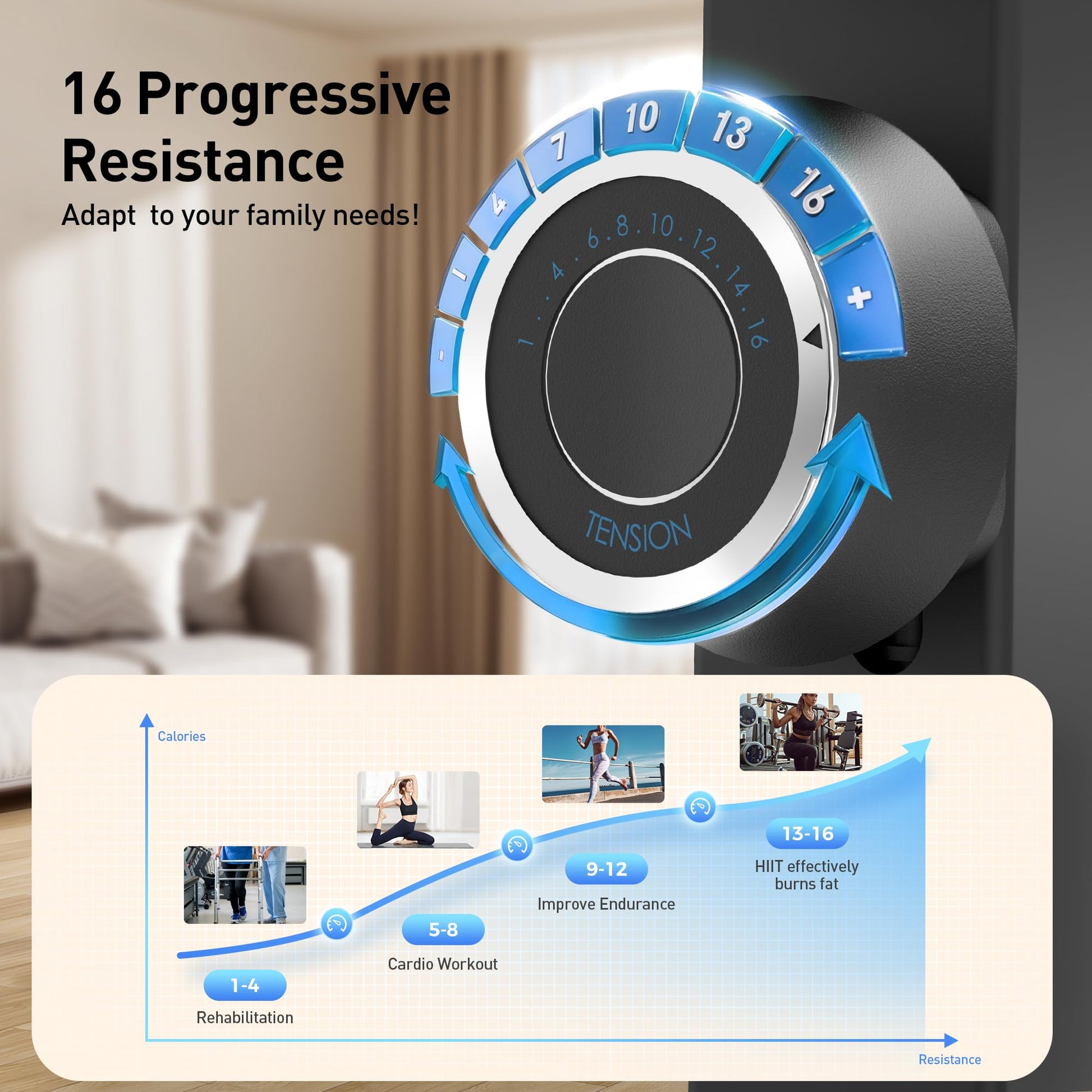 - [16 Progressive Smooth Magnetic Resistance Levels]: This stationary bike is designed with 16 progressive resistance levels, perfect for adapting to your fitness journey. Whether you’re looking for gentle rehab sessions to ease into exercise or pushing your limits with intense cardio workouts, this cycling bike has you covered. The smooth resistance adjustment allows for effortless transitions, ensuring your knees are protected throughout every session. Enjoy a personalized workout experience suitable for all fitness levels!