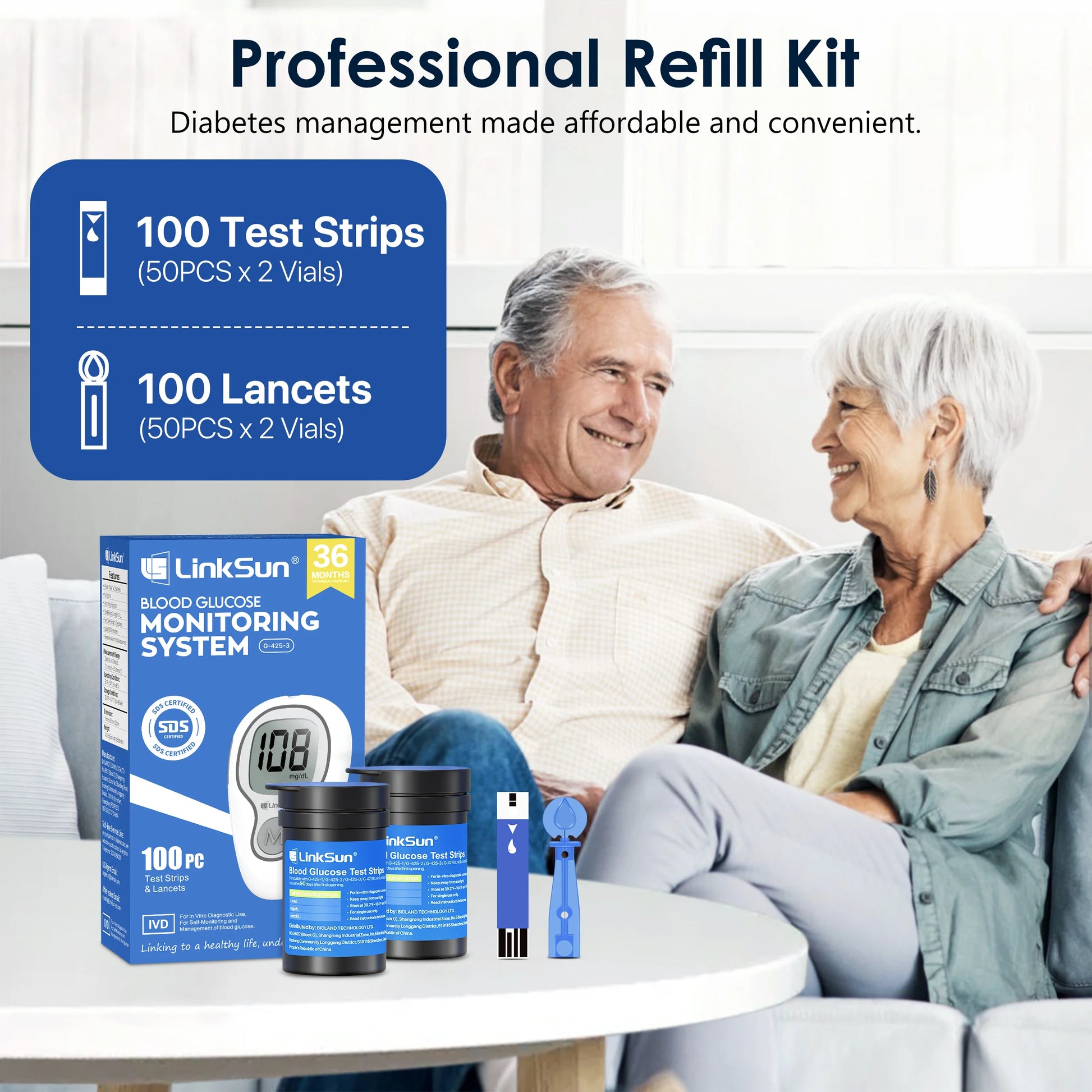 Blood Glucose Meter, 50/100pcs Diabetes Tester Blood Sugar Monitor, Digital, Complete Kit