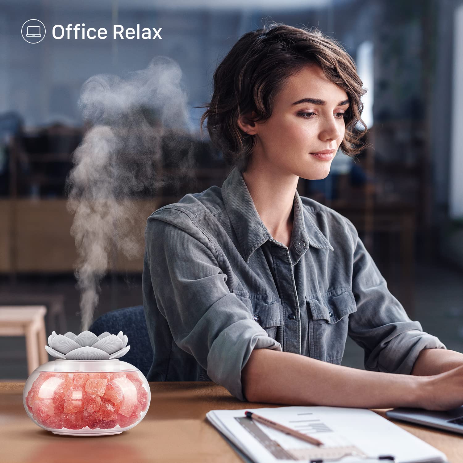 - Raise Air Quality with Oil Diffuser: Salt lamp diffuser offer a variety of aromatic sensory experiences that can instantly soothe, relax, and create a romantic atmosphere. They improve air quality, elevate your mood, relieve stress, and eliminate bad odors. The modern ultrasonic diffuser requires no heat, producing abundant steam that absorbs dust and balances humidity in your room