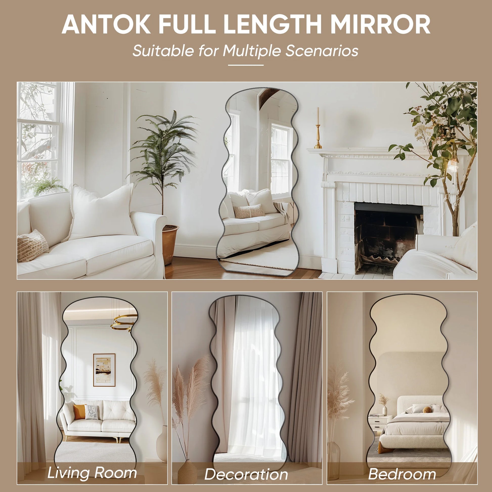 Full Length Mirror, 71"x32" Wavy Stand for Bedroom, Living Room Cloakroom